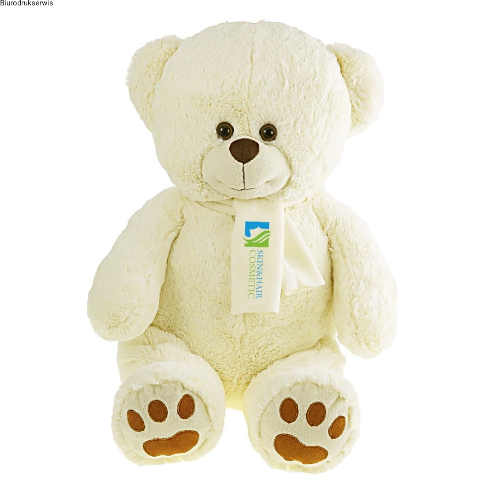 Beżowy miś w szaliku pod nadruk, może stanowić komplet z koszulką HU110