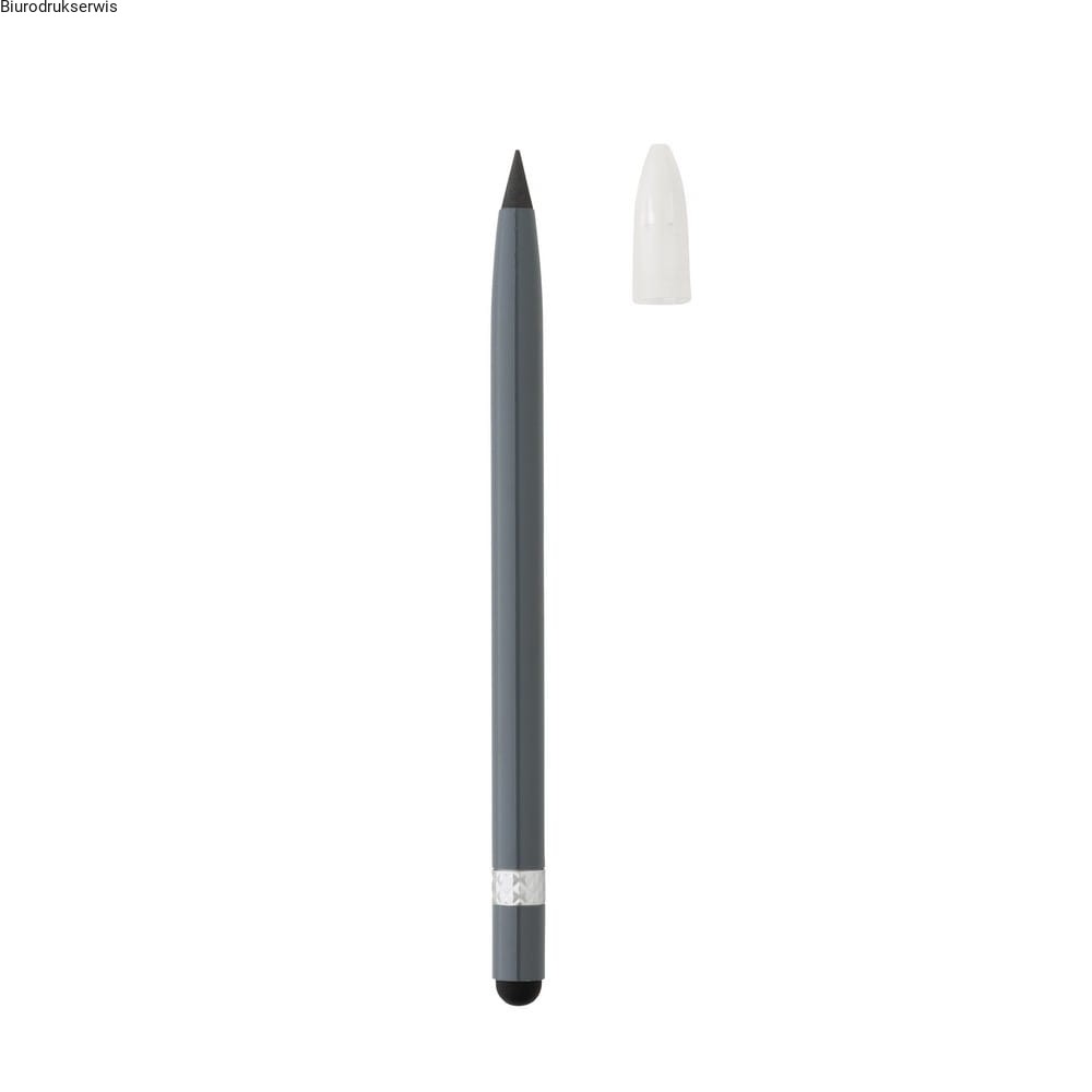 "Wieczny" ołówek z gumką, aluminiuowy trzon, dzięki wykorzystaniu specjalnej wolnościerającej się grafitowej końcówki długość pisania ołówka to około 20 000 metrów, notatki można zmazać standardową gumką do mazania