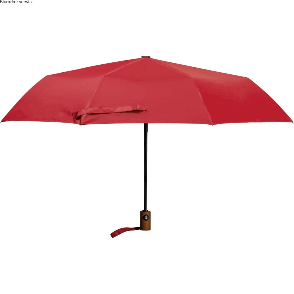 Automatyczna parasolka kieszonkowa, wykonana z materiału rPET pochodzącego z recyklingu. Stelaż wykonany został z włókna szklanego, parasol posiada drewnianą rączkę i pasek na rękę. Po złożeniu parasolka pakowana jest w dopasowane kolorystycznie etui z rPET.