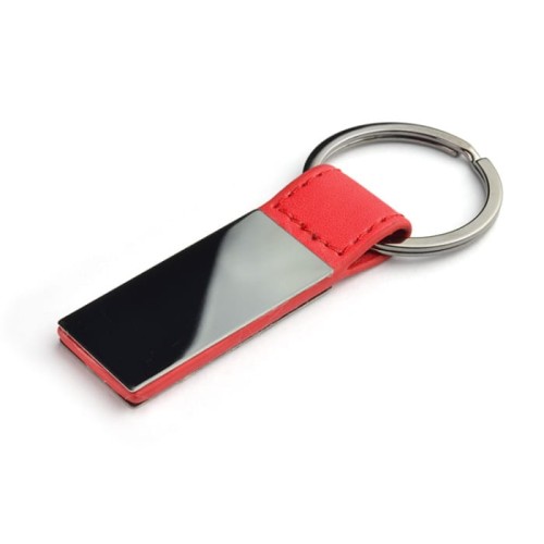 Elegancki dwustronny brelok wykonany z ekoskórki PU i metalu w kolorze grafitowym. Logo wygrawerujemy na metalowej blaszce.