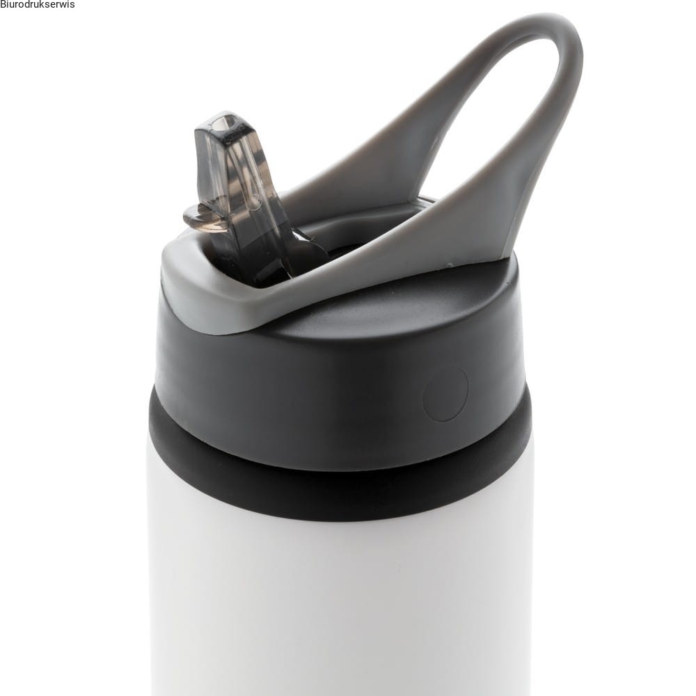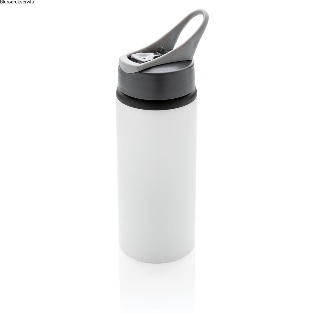 Butelka sportowa 600 ml, wykonana z wytrzymałego aluminium, pojedyncze ścianki, zakręcane wieczko, zamykany otwór do picia, nie zawiera BPA