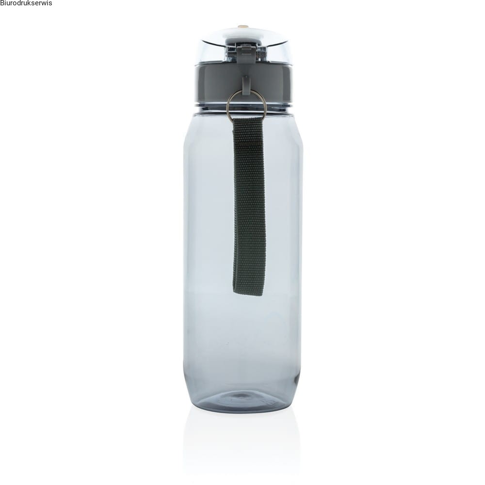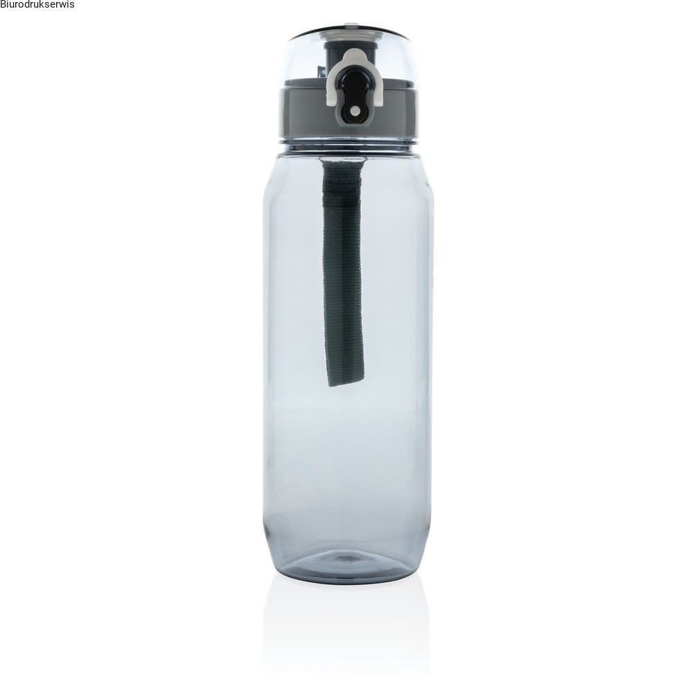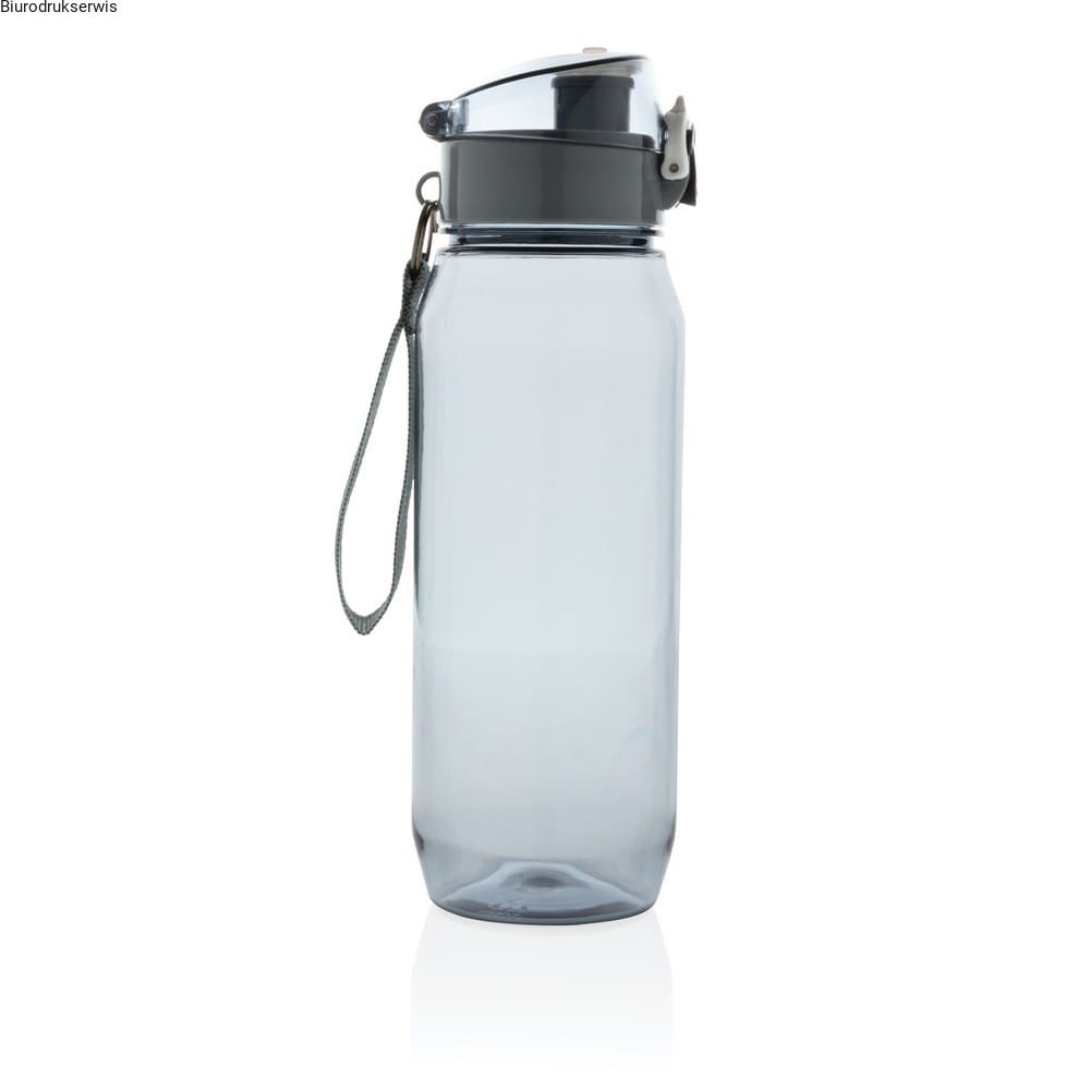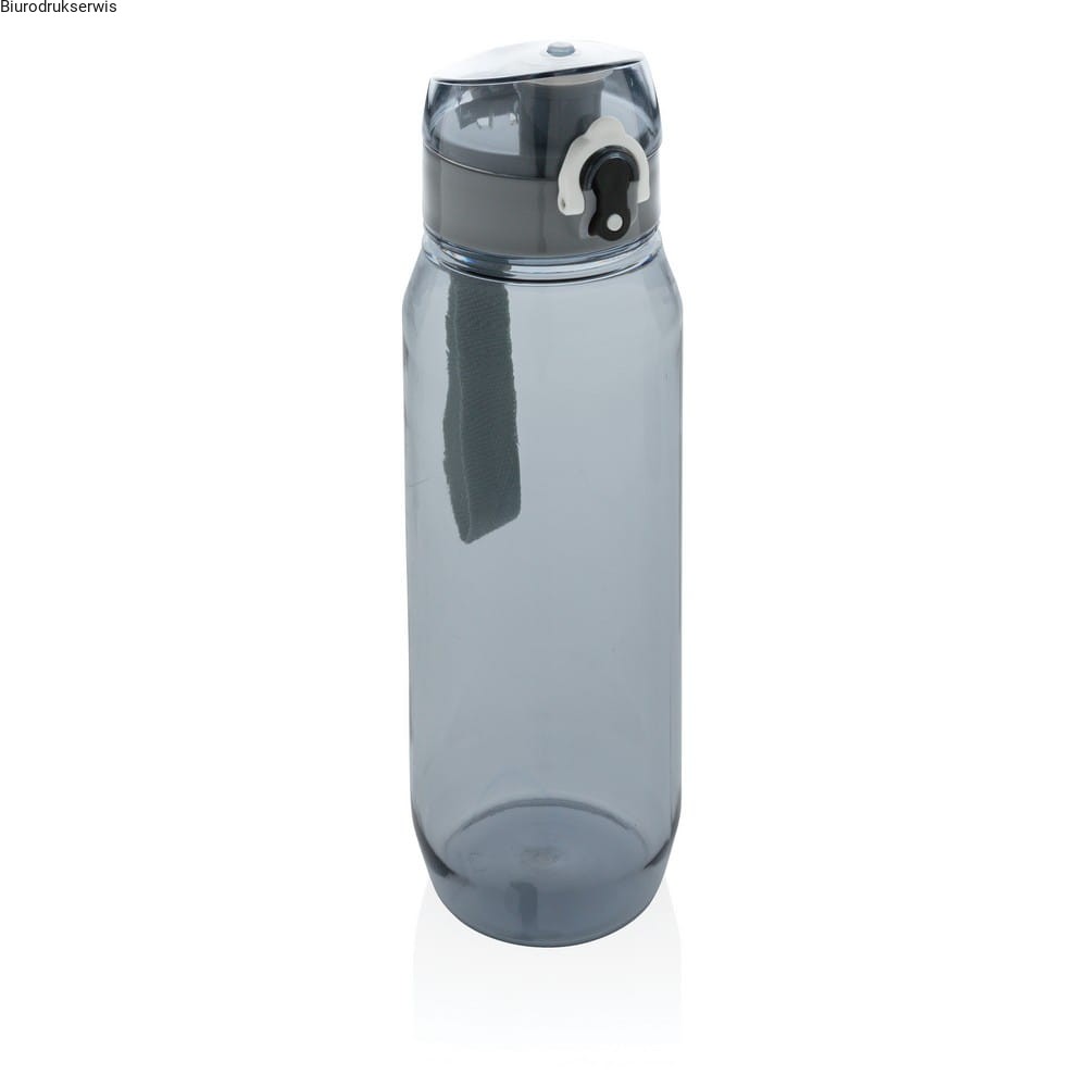 Butelka sportowa 800 ml, wykonana z Tritanu, bezwonna, szczelne wieczko z blokadą i przyciskiem, nie wymaga obsługi oburącz, posiada pasek, nie zawiera BPA
