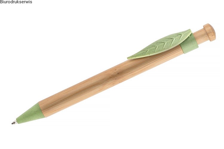Długopis FOLL został wykonany z myślą o wszystkich, którym bliska jest idea używania naturalnych surowców. Korpus tego długopisu wykonany jest z naturalnego bambusa, a klip i końcówki z tworzywa wykonanego w 50% z naturalnej słomy. Do idei ochrony środowiska nawiązuje też klip w kształcie liścia. Długopis automatyczny. Wkład typu X20 w kolorze niebieskim