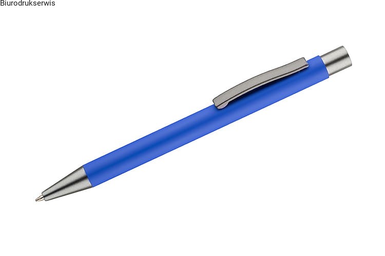Długopis GOMA to prosty design połączony z przyjemną w dotyku gumowaną powierzchnią. Całość jest utrzymana w lekkich, matowych barwach. Wykonany z aluminium. Wykończenia w kolorze grafitowym. Wkład w kolorze czarnym.