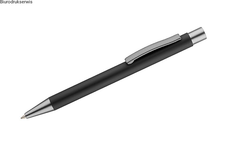 Długopis GOMA to prosty design połączony z przyjemna w dotyku gumowana powierzchnią. Całość jest utrzymana w lekkich, matowych barwach. Wykonany z aluminium. Wykończenia w kolorze grafitowym. Wkład w kolorze niebieskim.