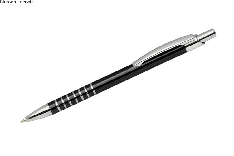 Prosty długopis wykonany z aluminium ozdobiony szerokimi ringami. Logo wygrawerujemy.