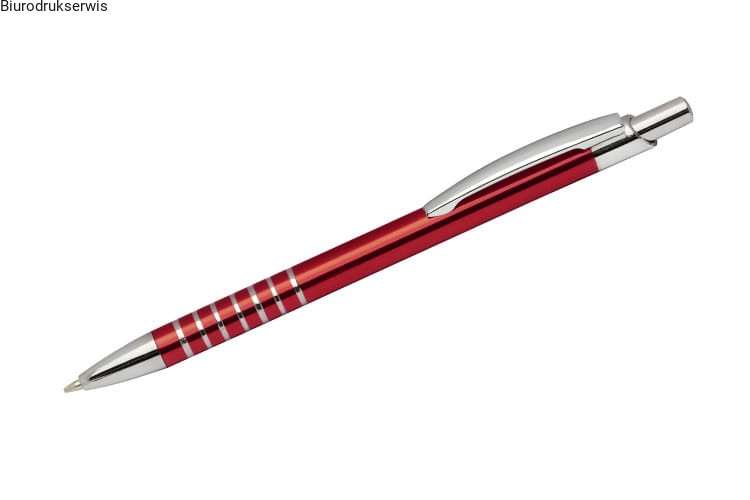 Prosty długopis wykonany z aluminium ozdobiony szerokimi ringami. Logo wygrawerujemy.