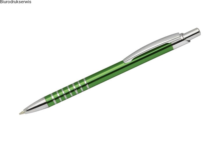 Prosty długopis wykonany z aluminium ozdobiony szerokimi ringami. Logo wygrawerujemy.