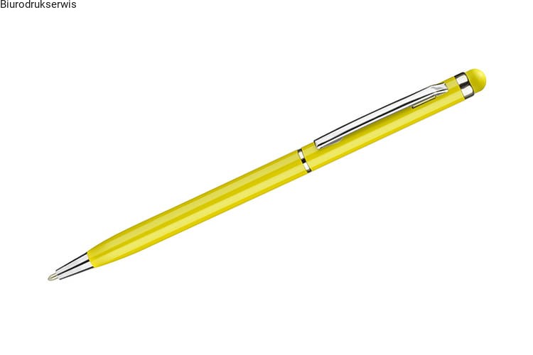 Nowa, ulepszona wersja dobrze znanego modelu. TIN 2 to cienki, metalowy długopis z kolorową końcówką do ekranów dotykowych (touch). Długopis posiada mechanizm typu """"twist"""". Wkład w kolorze niebieskim.