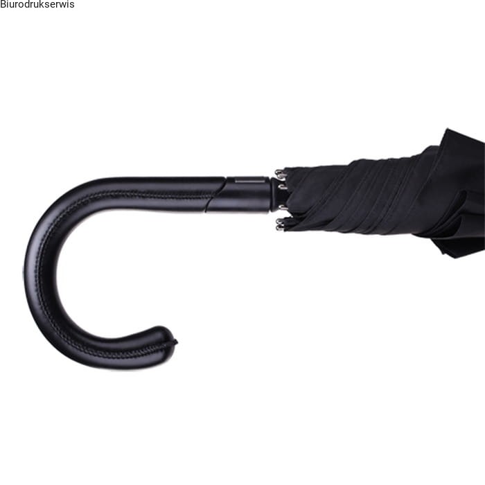 Elegancki automatyczny parasol z rączką wykonaną z wysokiej jakości ekoskóry. Pałąk, rama i żebra wykonane z włókna szklanego. ZDOBIENIA : sitodruk B5, rozmiar obszaru zdobienia: 250x152, maksymalny rozmiar logo: 250x150, ilość kolorów: 4