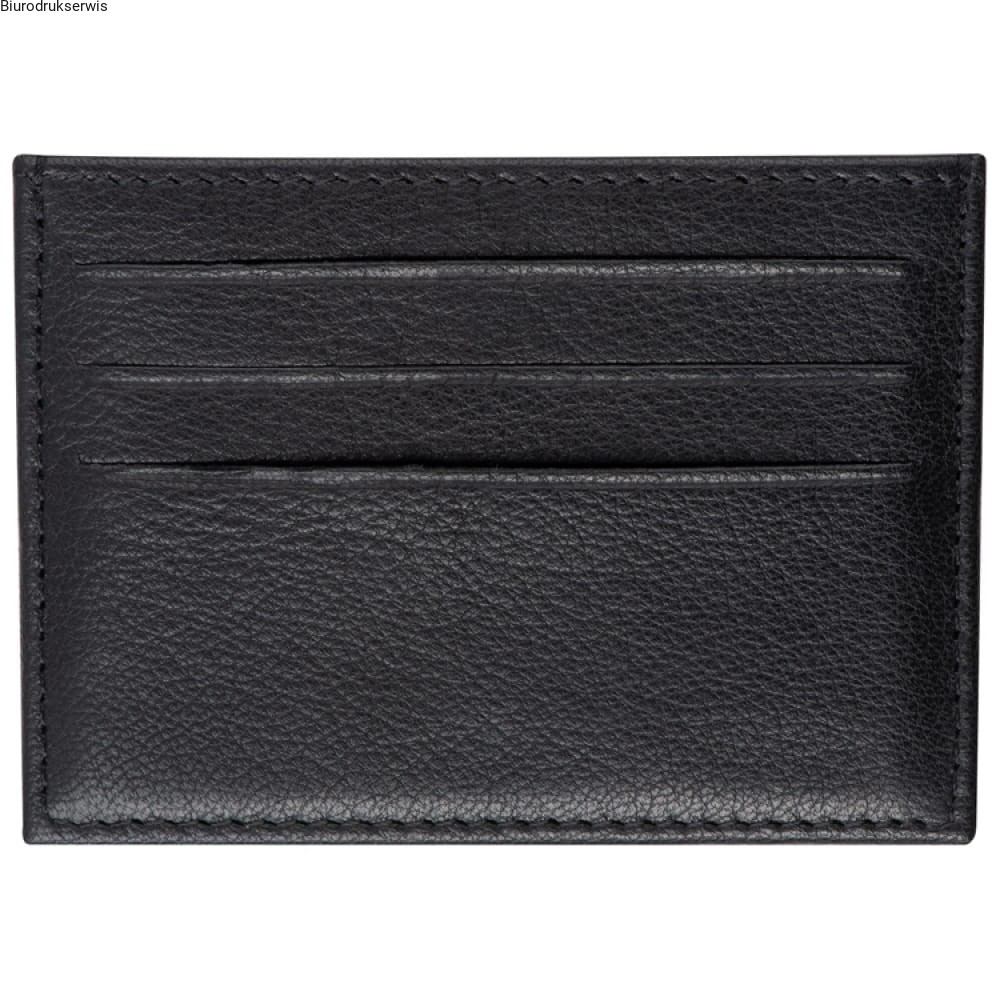 Etui na karty i wizytówki, wykonane ze skóry naturalnej, wyposażone w ochronę RFID zabezpieczającą karty przed kradzieżą danych. Posiada 3 przegrody na karty i wizytówki, a także kieszonkę na pieniądze. Logotyp można umieścić bezpośrednio na produkcie.