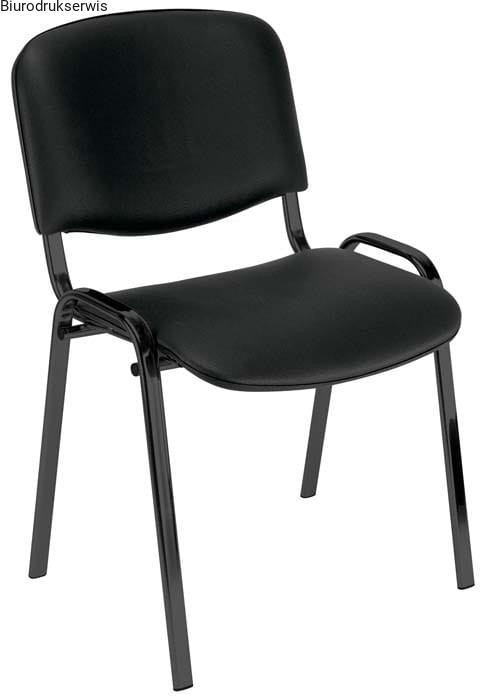 Rama wykonana z profilów stalowych malowanych proszkowo na kolor czarny,siedzisko i oparcie tapicerowane pianką oraz wytrzymałą tkaniną,układane w stos do 10 szt.,posiada niebrudzące stopki, chroniące podłogę przed zarysowaniem,plastikowa osło na siedziska zapobiega przecieraniu tkaniny podczas użytkowania,profilowane siedzisko umożliwia prawidłową cyrkulację krwi podczas siedzenia,imitacja skóry,kolor: czarny.