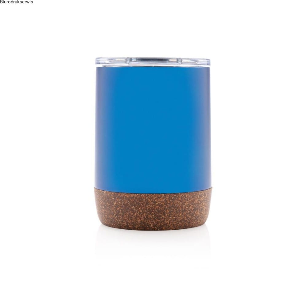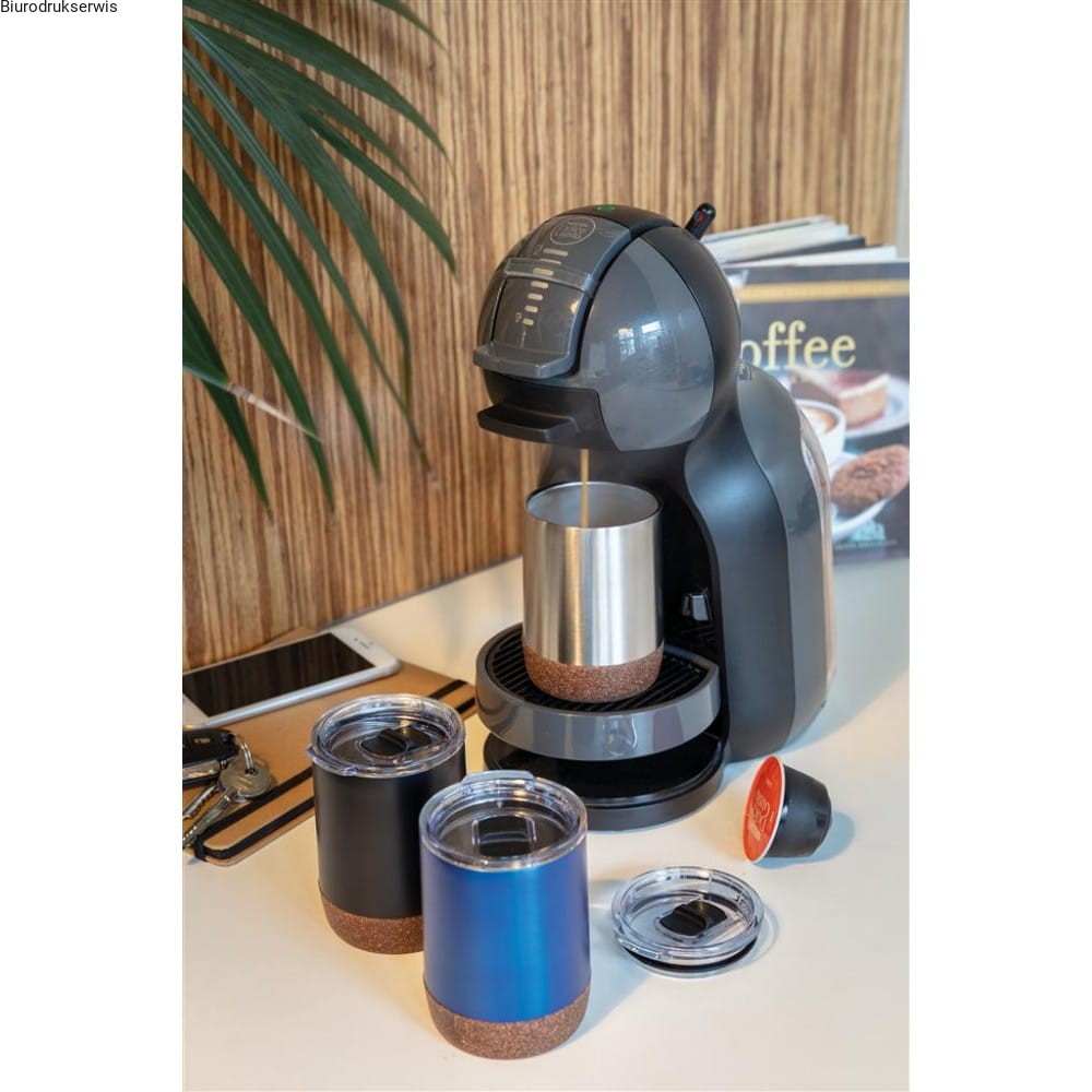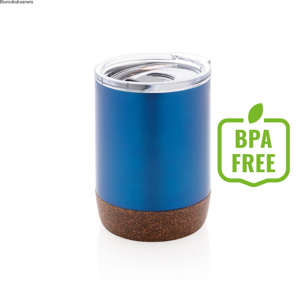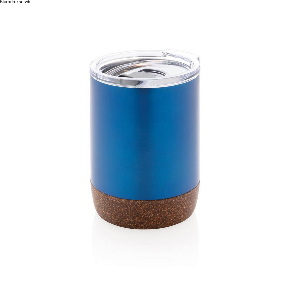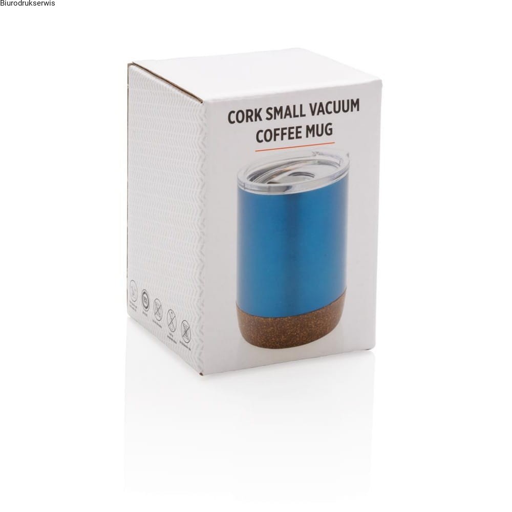 Korkowy kubek termiczny 180 ml, podwójne ścianki ze stali nierdzewnej z próżnią między ściankami, wewnątrz stal nierdzewna 304, na zewnątrz stal nierdzewna 201, utrzymuje napoje ciepłe do 5 godzin oraz zimne do 15 godzin, korkowa podstawa, pasuje do większości ekspresów do kawy