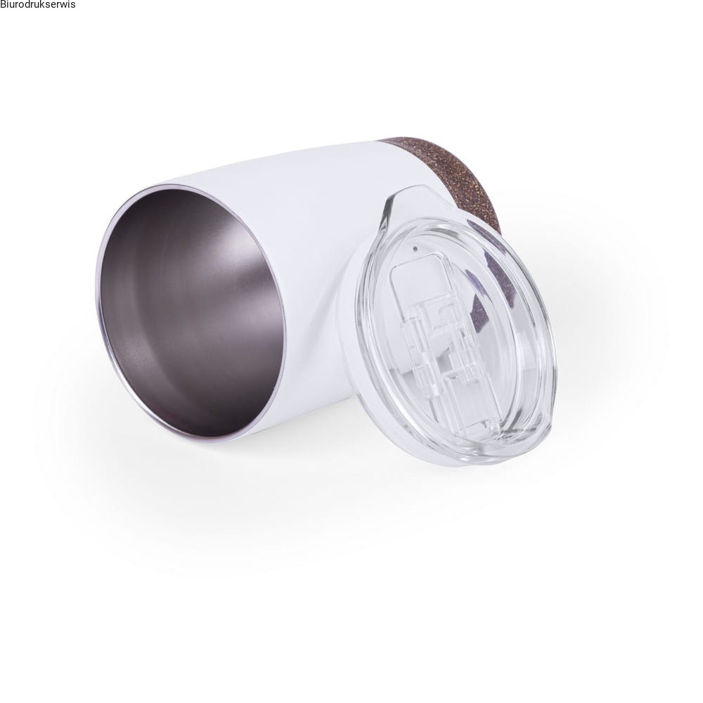 Kubek podróżny 380 ml z podwójnymi ściankami ze stali nierdzewnej, próżnia między ściankami, korkowy element, nie zawiera BPA