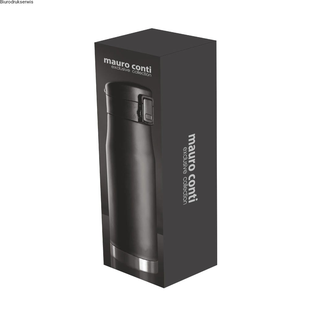 Kubek termiczny Mauro Conti 550 ml, wieczko z blokadą, miedziana izolacja próżniowa, podwójne ścianki ze stali nierdzewnej z próżnią między ściankami dzięki czemu zachowuje funkcje termosu i długo utrzymuje temperaturę nie oddając jej na zewnątrz, funkcja push open / close, nie wymaga obsługi oburącz, zapakowany w ozdobnym pudełku, klasa termiczna: 3 +leakproof