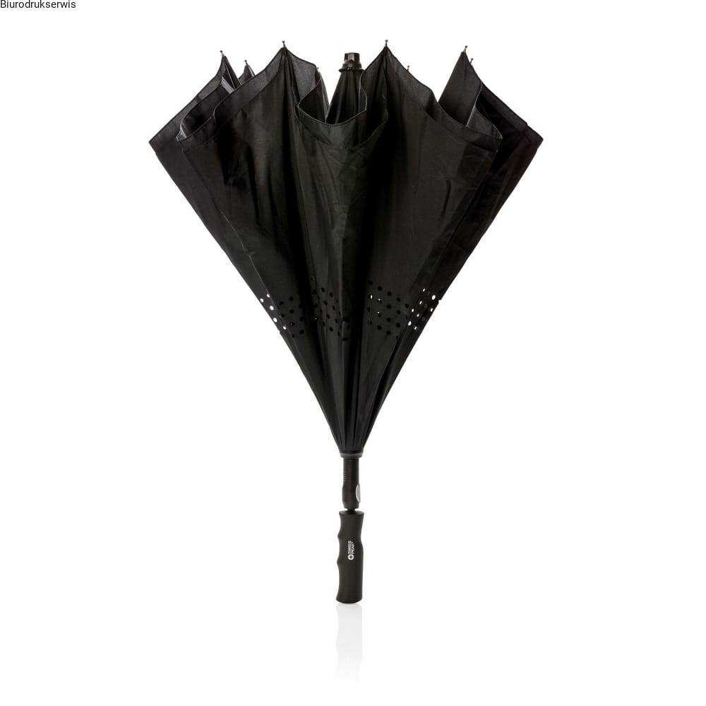 Odwracalny parasol 23", materiał pongee 190T, posiada automatyczny system otwierania i manualny system zamykania. Stelaż wykonany z włókna szklanego, rama z systemem wiatroszczelnym.