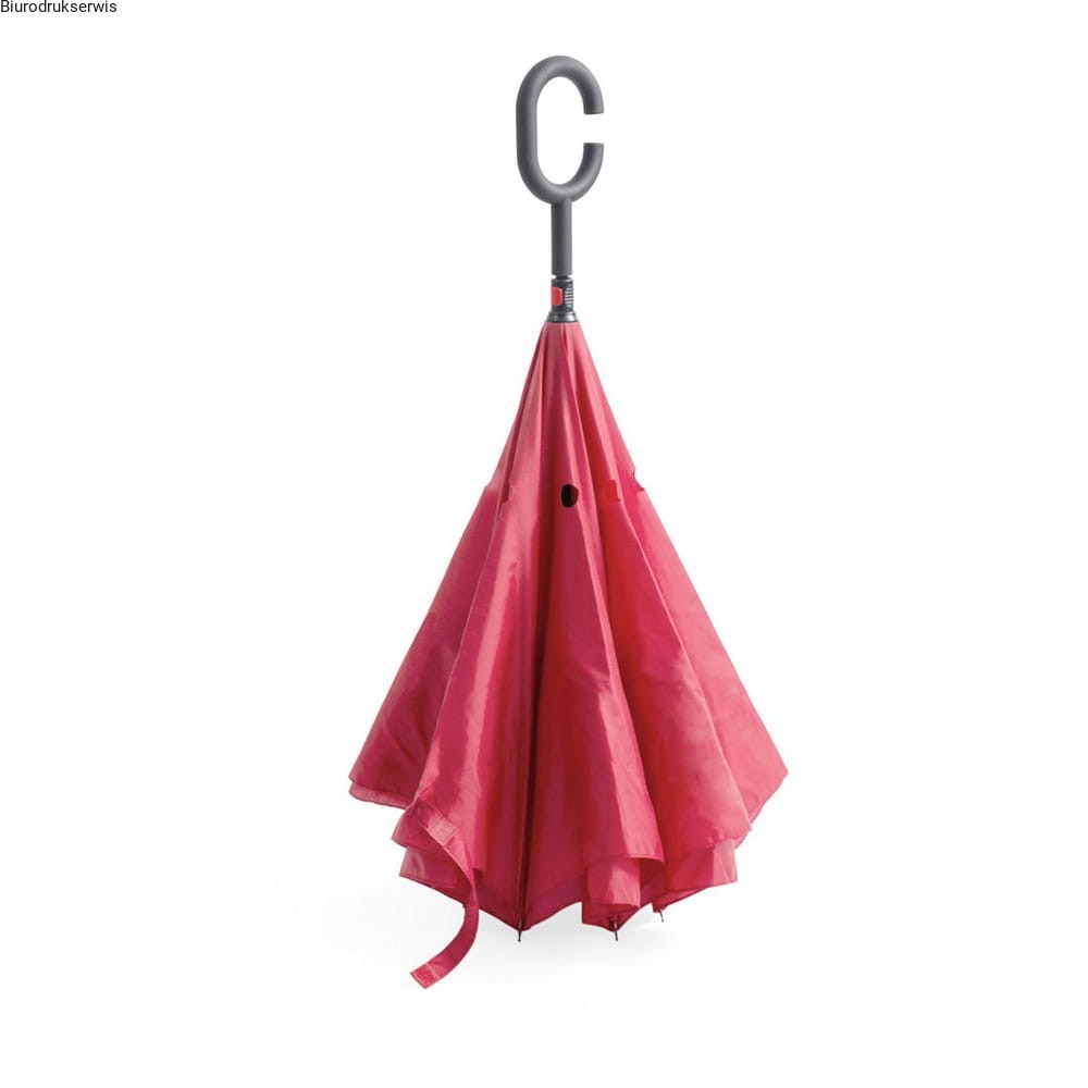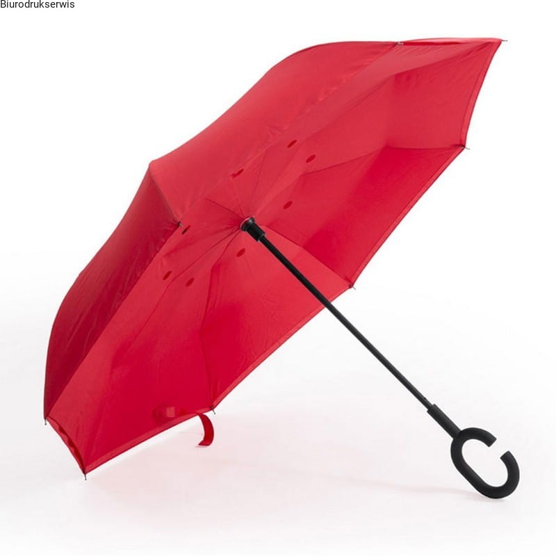 Odwracalny parasol manualny, 8 paneli, specjalna rączka w kształcie litery C ułatwiająca obsługę telefonów w czasie deszczu