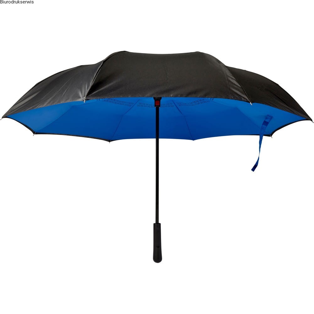 Odwracalny parasol manualny, 8 paneli, czarny trzon i rama z włókna szklanego, plastikowa rączka, zapięcie na rzep