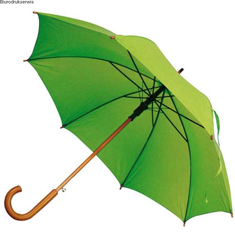 Parasol automatyczny z drewnianą, wygiętą rączką wykonany z poliestru 190T. Dostępny w bogatej gamie kolorystycznej.