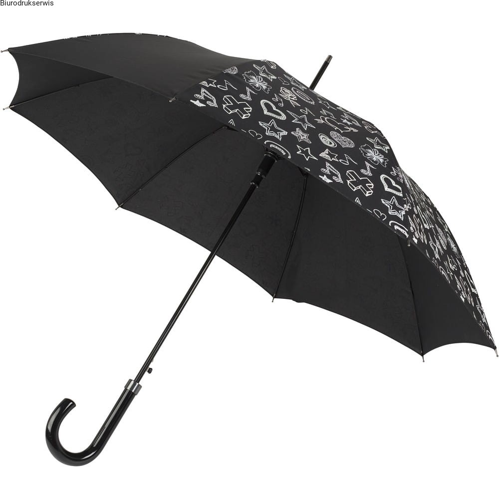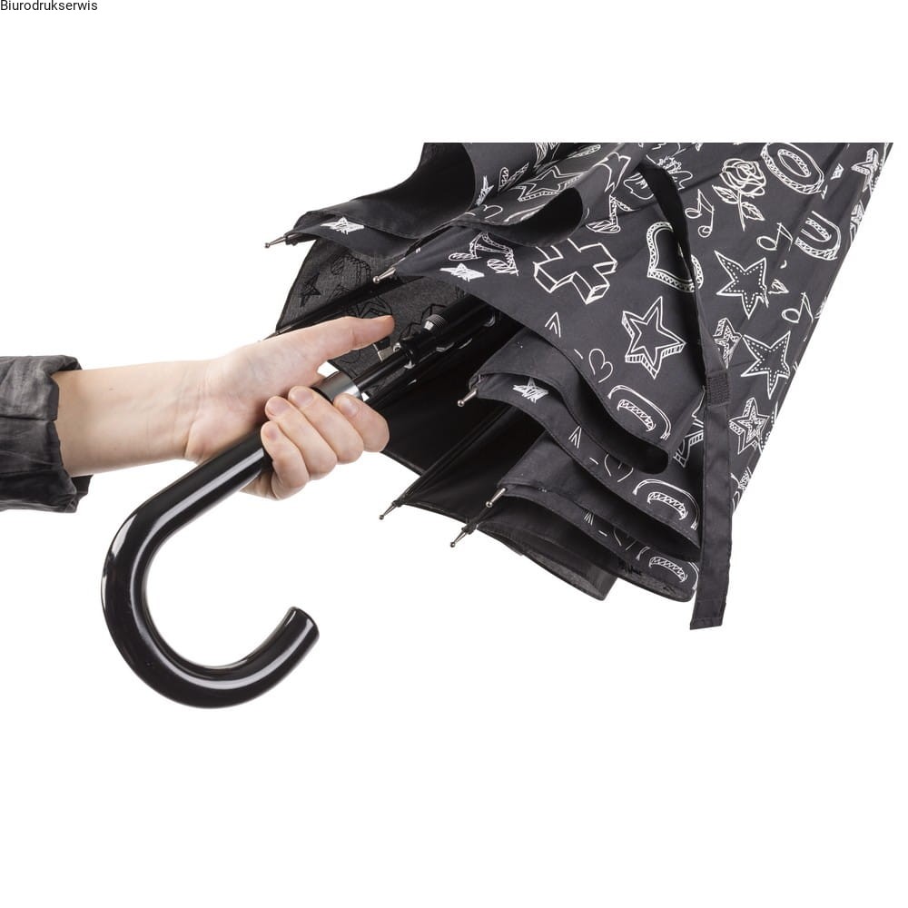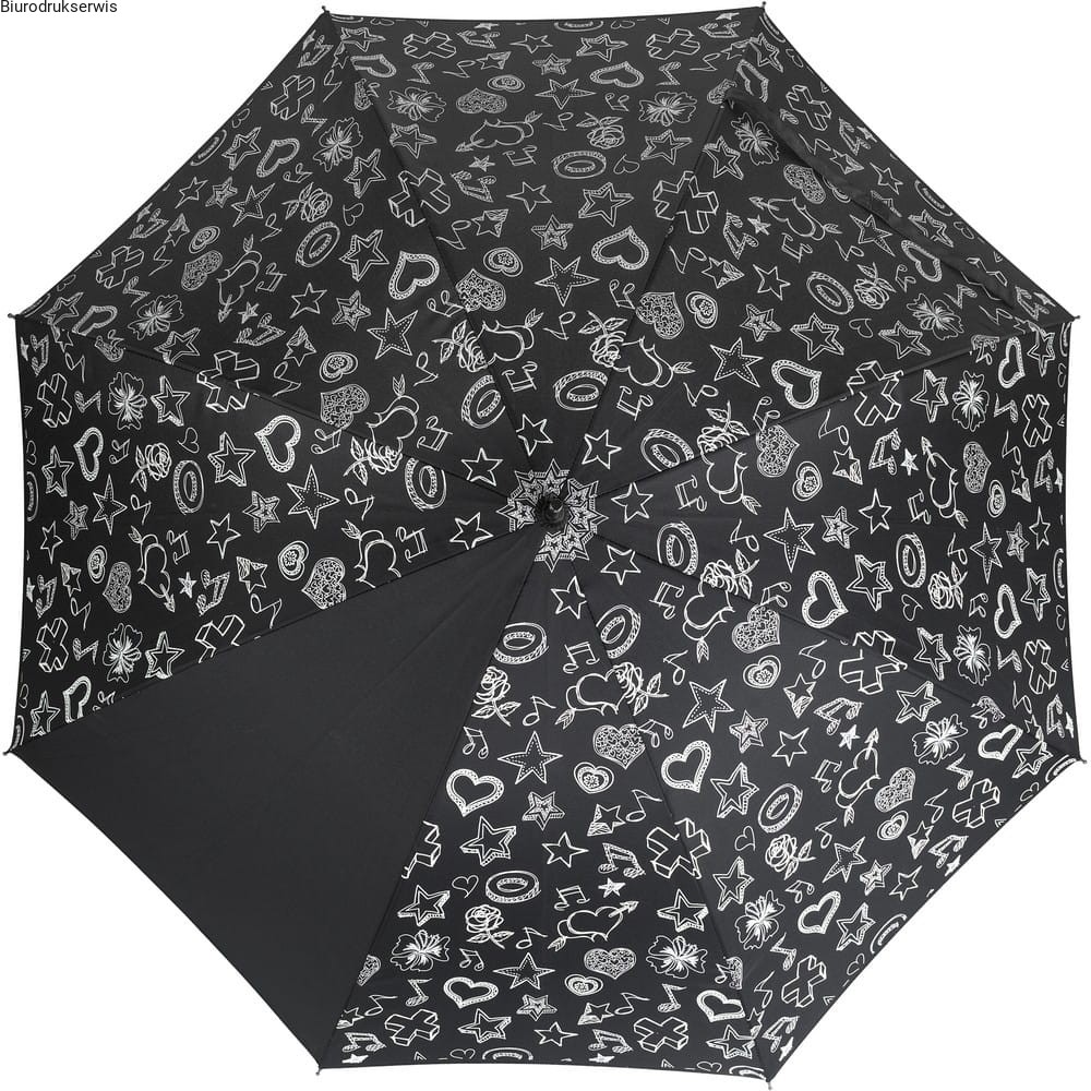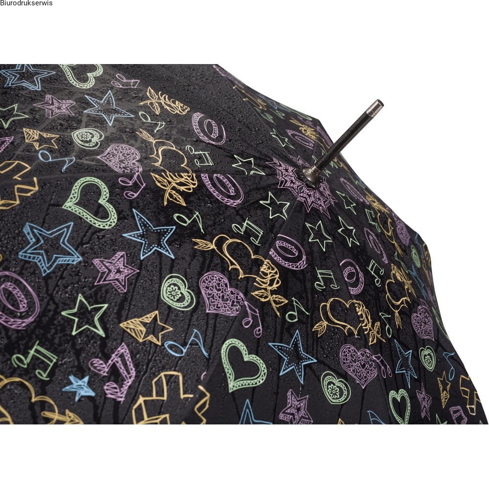 Parasol automatyczny, 8 paneli, metalowy trzon, rama z włókna szklanego, plastikowa rączka, białe elementy zmieniają kolor po zmoknięciu materiału