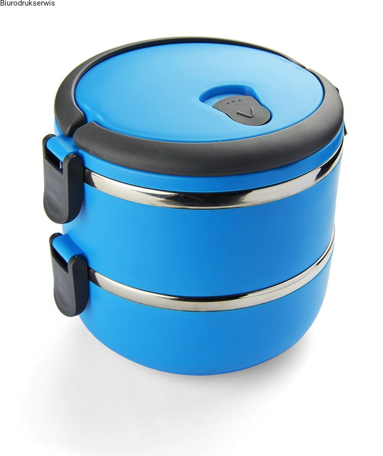 Pojemnik z wnętrzem ze stali nierdzewnej podzielony na dwie komory, które składamy jedną na drugą, co zapewnia poręczne i wygodne przenoszenie dwudaniowych posiłków. Górna komora wyposażona w uszczelkę. Uchwyty z tworzywa sztucznego z możliwością złożenia. Łączna pojemność: 1400 ml.