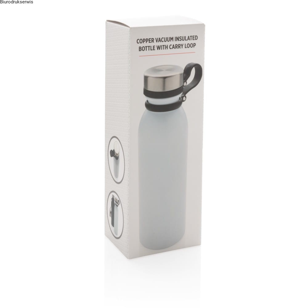 Butelka sportowa 600 ml z silikonowym uchwytem, miedziana izolacja próżniowa, podwójne ścianki z próżnią między ściankami, nie wymaga obsługi oburącz, szczelne wieczko, specjalna konstrukcja zapobiega kondensacji na zewnątrz kubka, utrzymuje temperaturę ciepłych napojów do 8 godzin oraz zimnych do 24 godzin