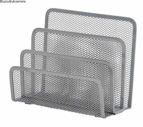 - Metalowy sorter do korespondencji z siateczki powlekanej lakierem, wyposażony w trzy przegrody.