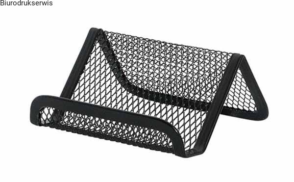 - Metalowy stojak na wizytówki z metalowej siateczki powlekanej lakierem.