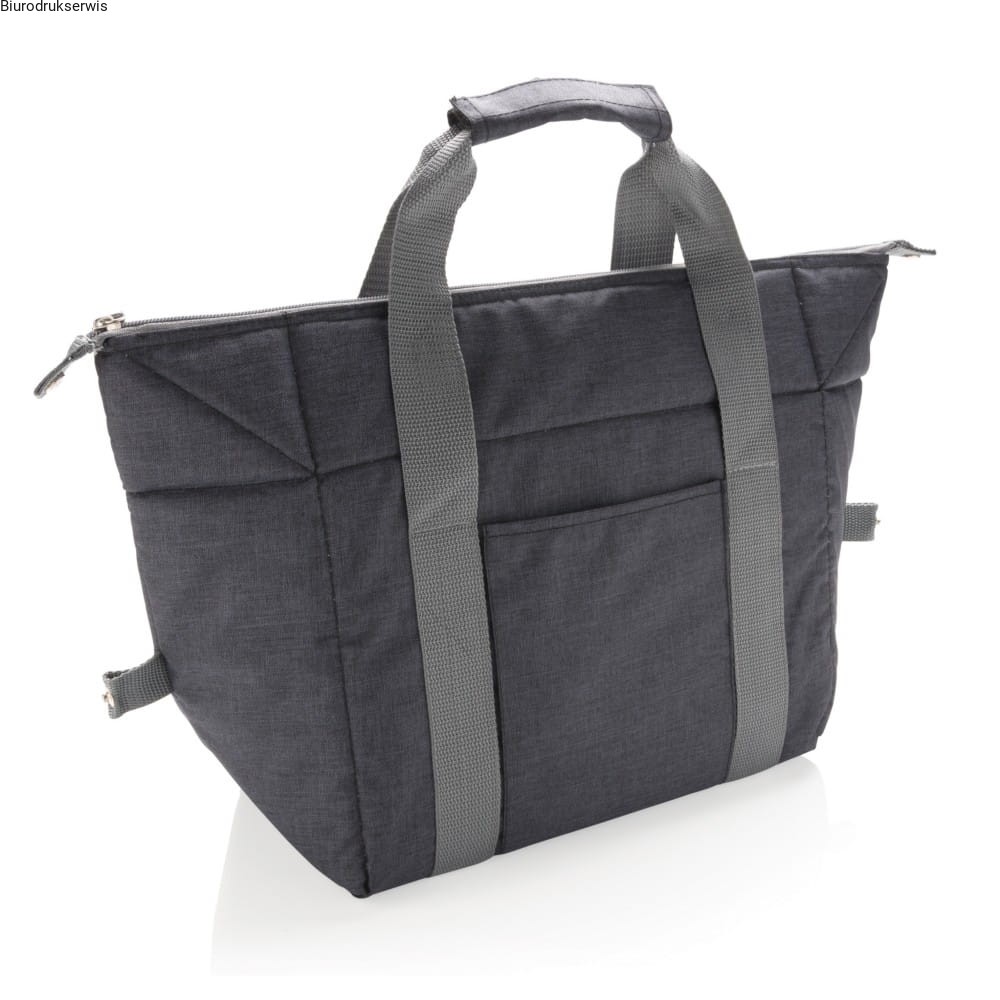 Średniej wielkości torba termoizolacyjna 600D z rączkami. Posiada przednią kieszeń, może pomieścić do 26 puszek 0,33 l i w łatwy sposób zostać przeobrażona w worek - wystarczy ją zapiąć z boku.