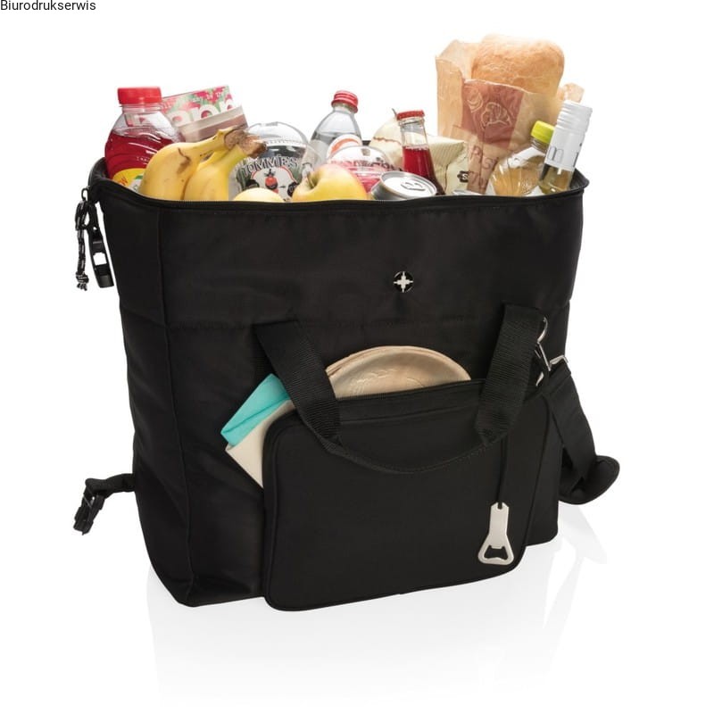 Luksusowa torba termoizolacyjna, wykonana z poliestru 1680D i 600D. Posiada wyjątkowo dużą przegrodę główną, przednią kieszeń na zamek błyskawiczny oraz otwieracz do piwa. W łatwy sposób może zostać przeobrażona w worek - wystarczy ją zapiąć z boku. Bardzo duża pojemność (40 l), pomieści do 10 butelek 1,5 l lub 52 puszek 0,33 l. Podwójnie wzmocnione uchwyty oraz regulowany, odpinany pasek na ramię. Izolacja PEVA.