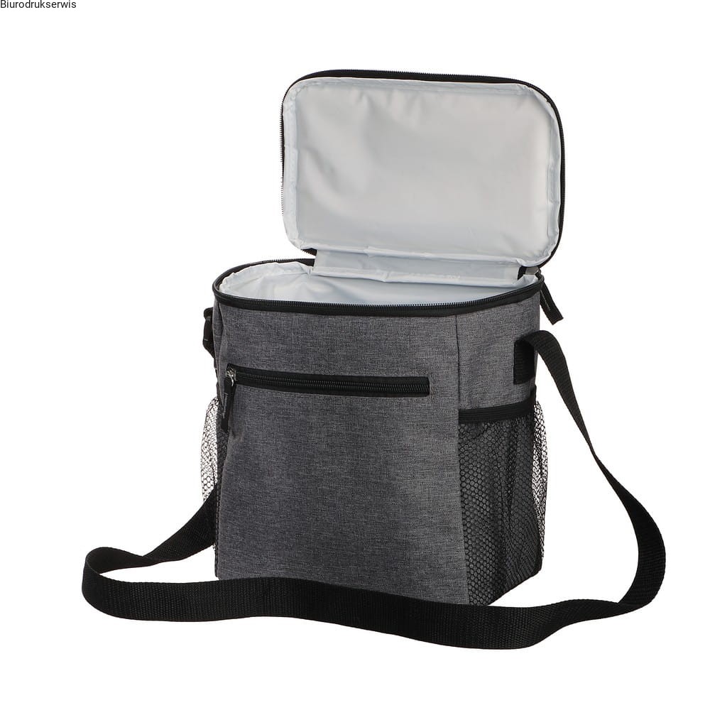 Torba termoizolacyjna, komora główna i przednia kieszeń zamykane na zamek błyskawiczny, 2 boczne kieszenie siateczkowe, rączka do noszenia oraz regulowany pasek na ramię