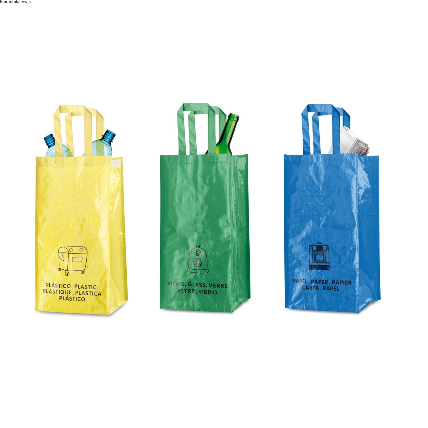 Zestaw 3 toreb do segregacji szkła, plastiku i papieru, rozmiar torby 23 x 45 x 23 cm