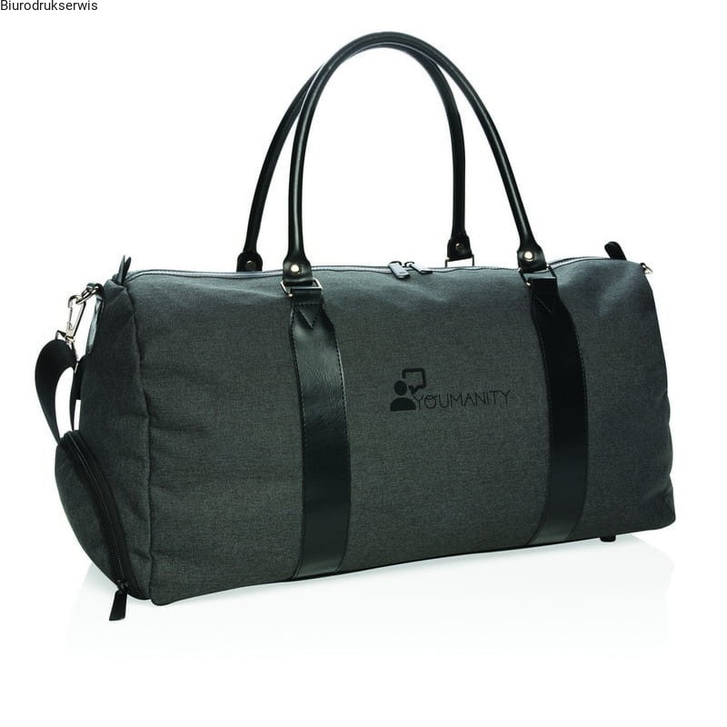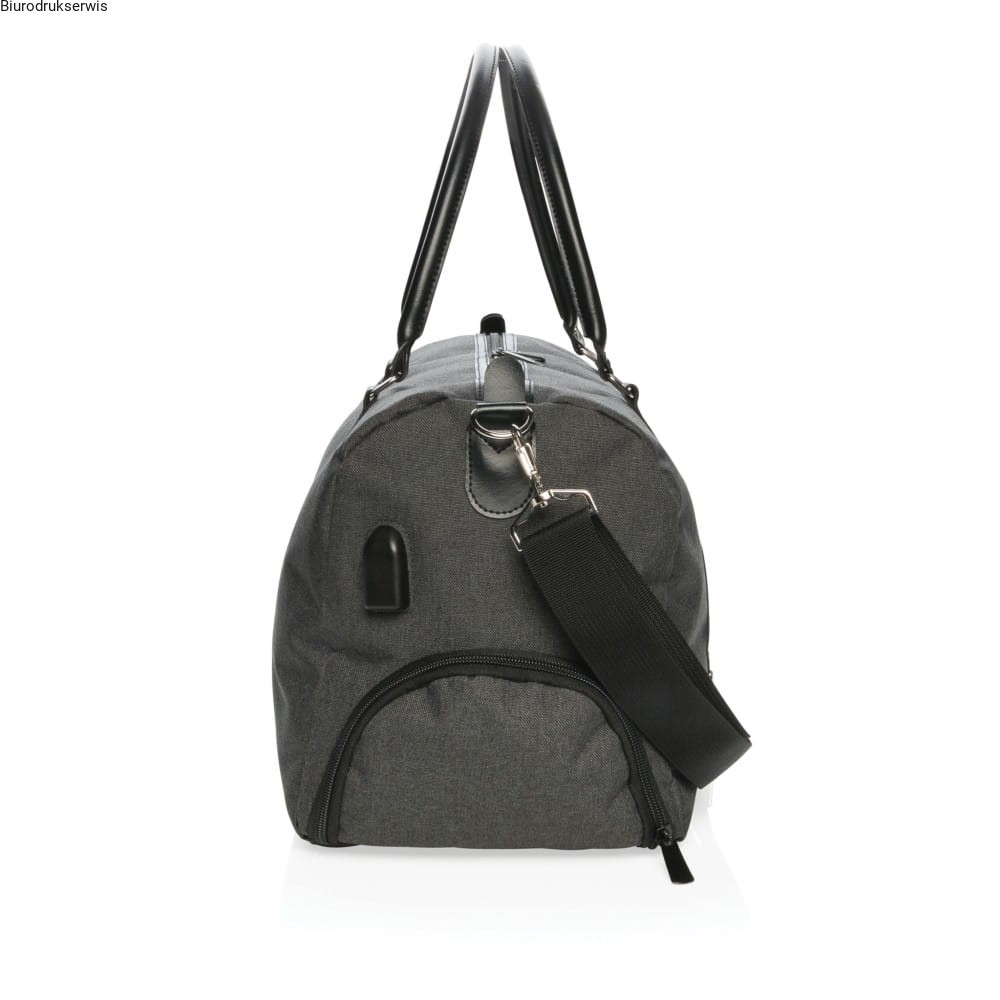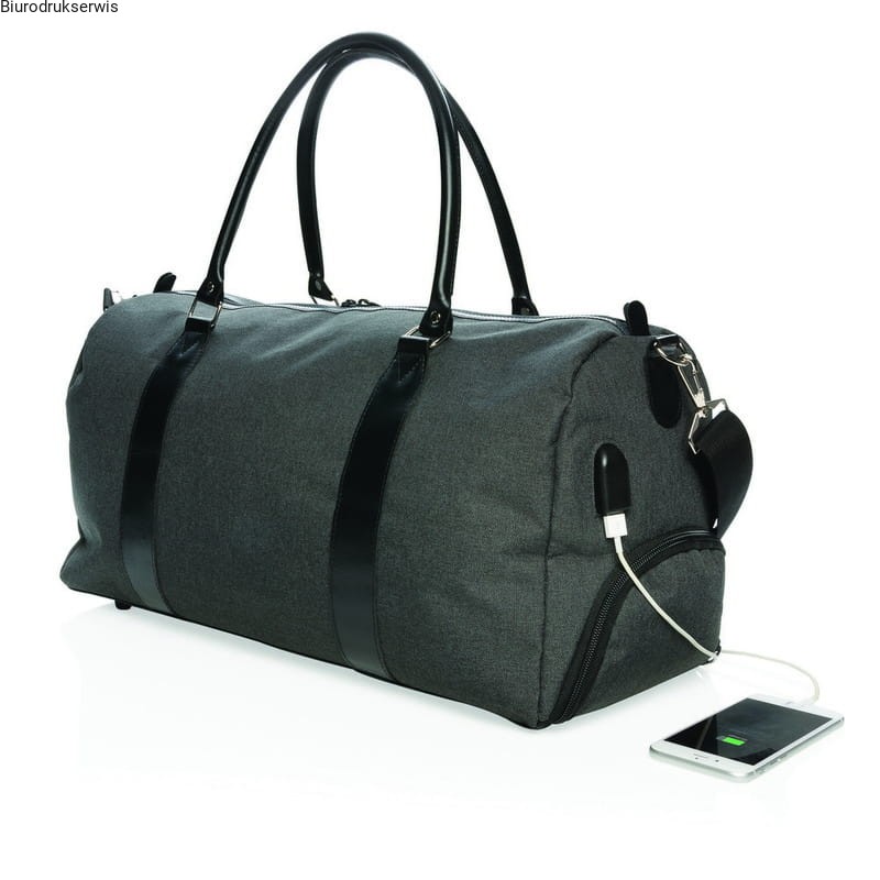 Nowoczesna i minimalistyczna torba sportowa, weekendowa wykonana z poliestru 600D. Posiada uchwyt z PU, łatwo dostępną kieszeń i wygodny pasek na ramię. Główna przegroda jest niezwykle pojemna, pomieści wszystkie niezbędne akcesoria weekendowe lub sprzęt sportowy. Co więcej, można podłączyć power-bank do zintegrowanego portu USB i naładować telefon lub tablet w czasie podróży. Nie zawiera PVC.