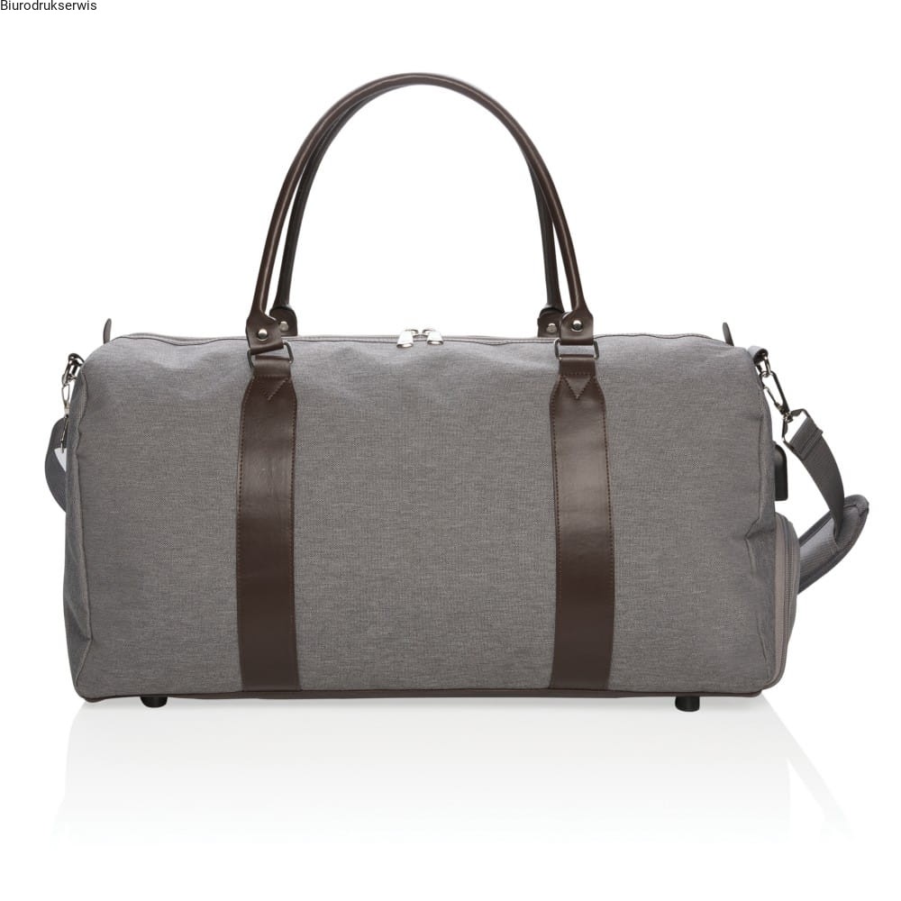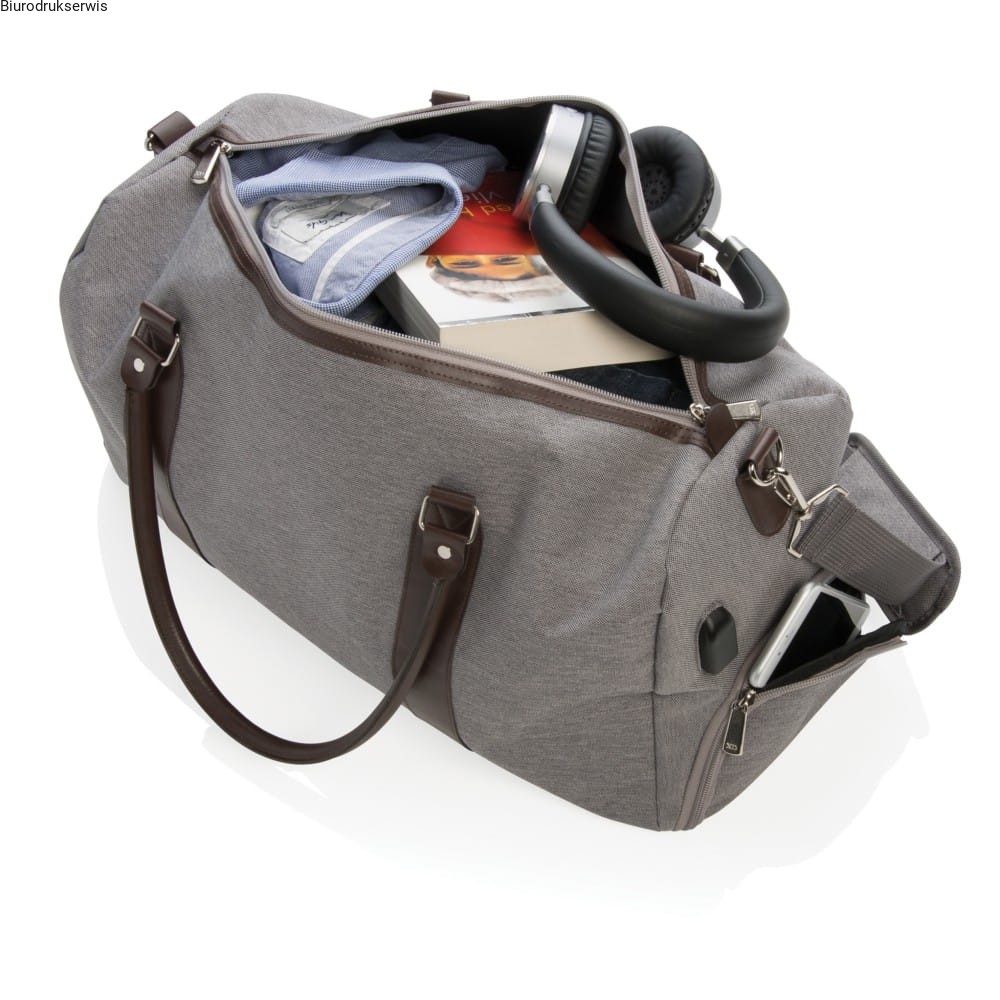 Nowoczesna i minimalistyczna torba sportowa, weekendowa wykonana z poliestru 600D. Posiada uchwyt z PU, łatwo dostępną kieszeń i wygodny pasek na ramię. Główna przegroda jest niezwykle pojemna, pomieści wszystkie niezbędne akcesoria weekendowe lub sprzęt sportowy. Co więcej, można podłączyć power-bank do zintegrowanego portu USB i naładować telefon lub tablet w czasie podróży. Nie zawiera PVC.