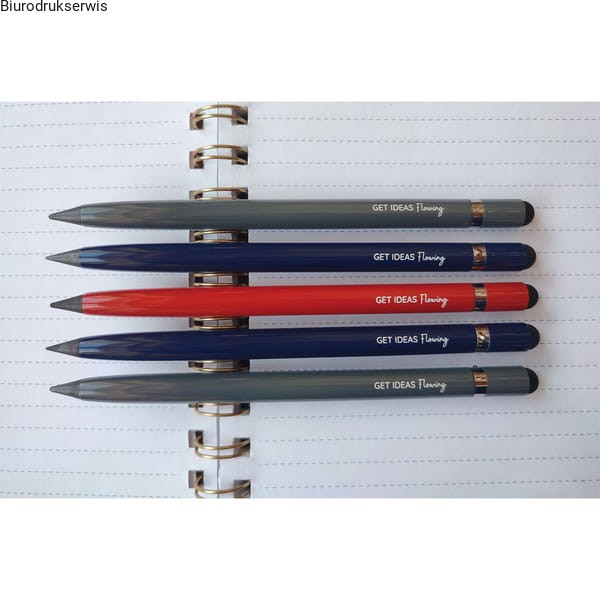 Długowieczny ołówek/długopis z gumką i końcówką do ekranów dotykowych. Długość pisania odpowiada 100 zwykłym ołówkom.
