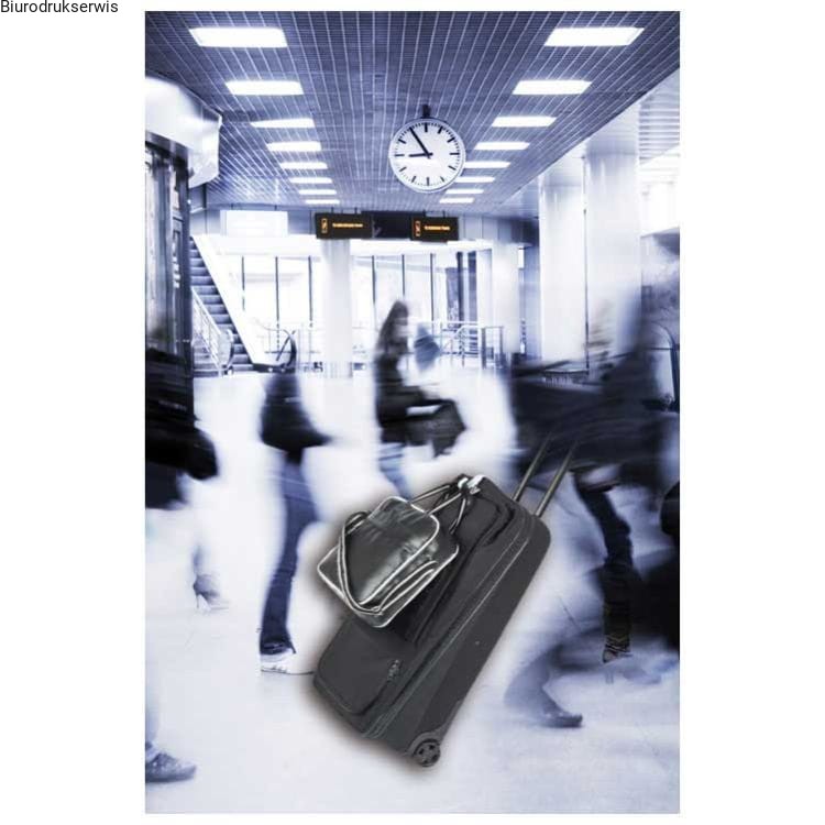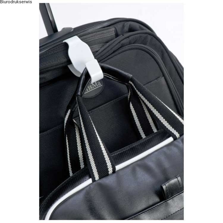 Podróżny wieszak na torbę, który wystarczy zawiesić na rączce od walizki, a następnie powiesić na nim torebkę.