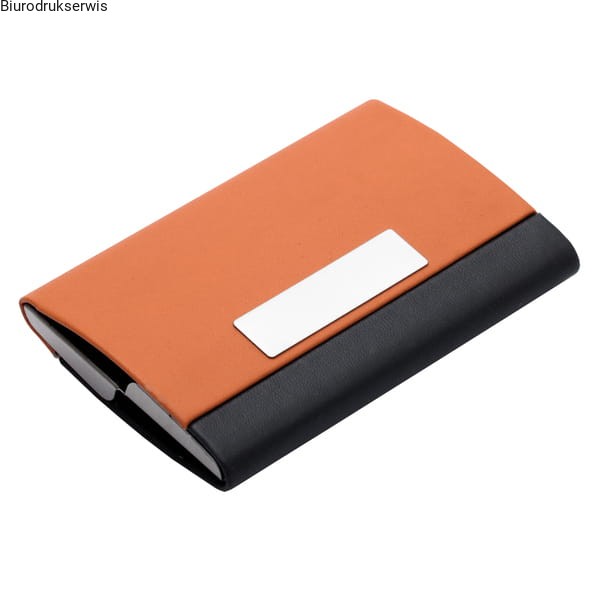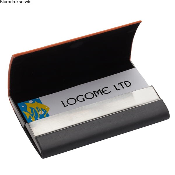 Dwustronny wizytownik mieszczący po 9-12 wizytówek po każdej stronie. Wykonany z ekoskóry. Wyposażony w metalową blaszkę doskonałą do prezentacji logotypu. ZDOBIENIA : grawer L2, rozmiar obszaru zdobienia: 36x8, maksymalny rozmiar logo: 35x7, ilość kolorów: 1