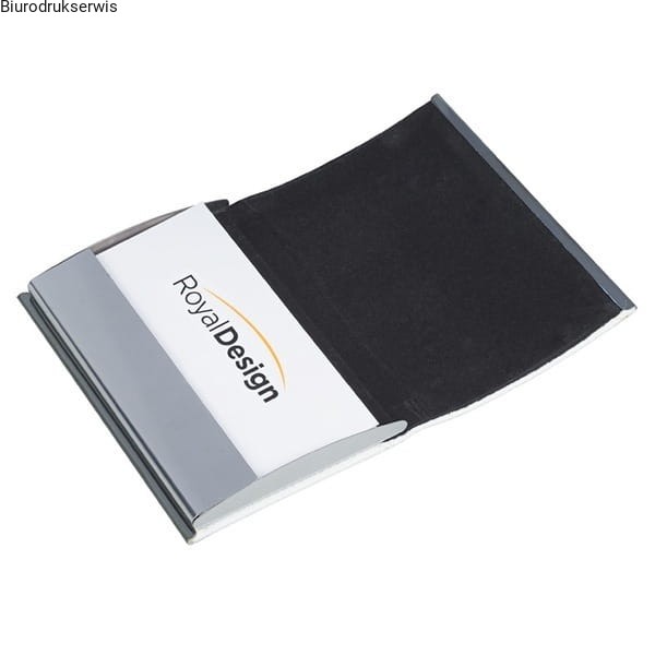 Etui na wizytówki wykonane z ekoskóry o ciekawej fakturze. Wykończone metalową oksydowaną blaszką z magnesem zamykającym etui.