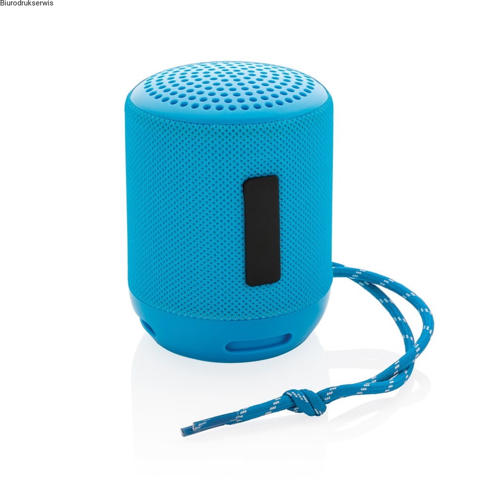 Głośnik bezprzewodowy 3W, BT 5.0, wykonany z wodoodpornego (IPX4) poliestru wysokiej jakości, wbudowany akumulator o pojemności 300 mAh umożliwia odtwarzanie muzyki do 3 godzin, zasięg do 10 m