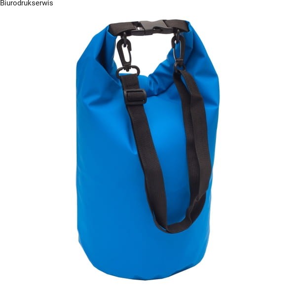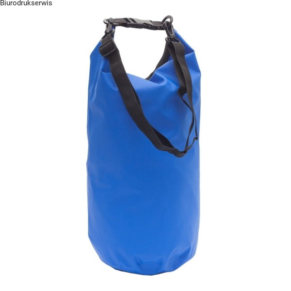 Wodoodporny worek o gumowanej powierzchni. Pojemność 10 l. Wyposażony w szczelne rolowane zamknięcie i odpinany pasek na ramię. ZDOBIENIA : sitodruk B6, rozmiar obszaru zdobienia: 234x245, maksymalny rozmiar logo: 230x240, ilość kolorów: 1